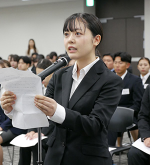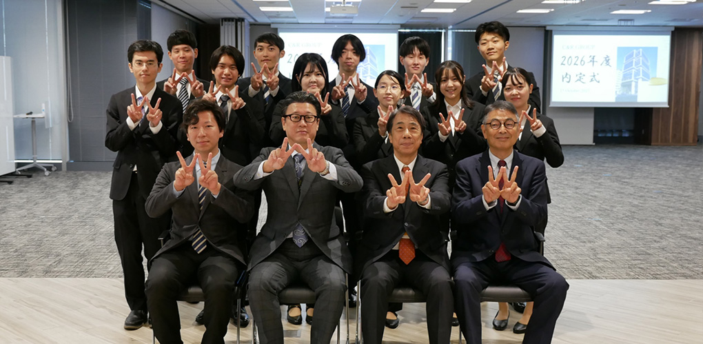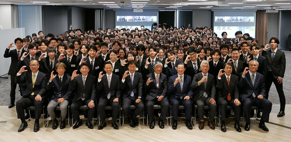 2026年度内定式(2025.10.01クリーク・アンド・リバー社にて) C&Rグループ会長の祝辞 ウイング代表取締役からの祝辞 ウイング内定者代表の決意表明 C&Rグループ合同内定式には9社280人の内定者が出席 ウイングからは内定者11人が出席 お知らせ 一覧